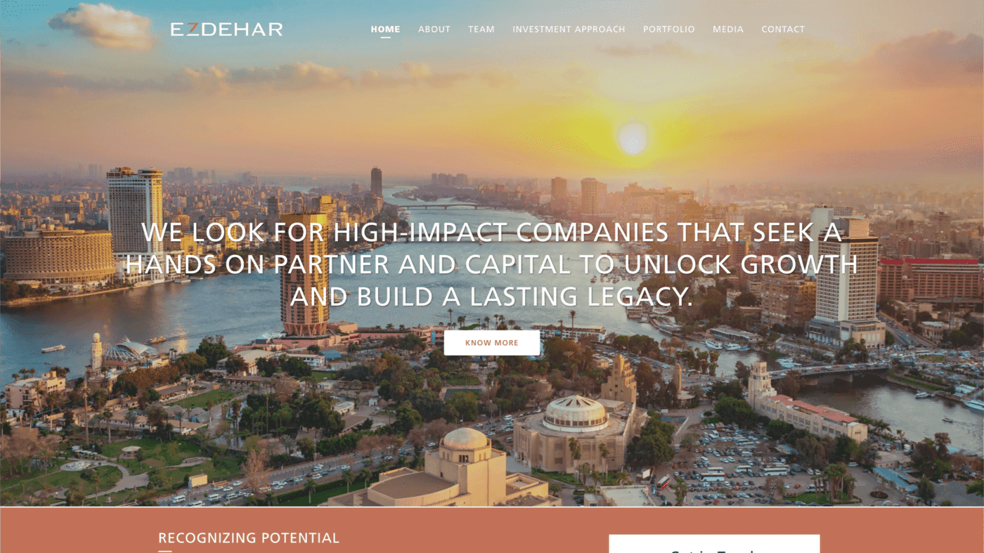 34ML partnered with Ezdehar, the leading private equity in Egypt, to create a website that reflects their commitment to regional prosperity and societal well-being. The website tells Ezdehar's story, highlighting their dedication to building a brighter future for the region and its people. It also displays their portfolio media, demonstrating their impact and fostering trust with potential investors and partners.