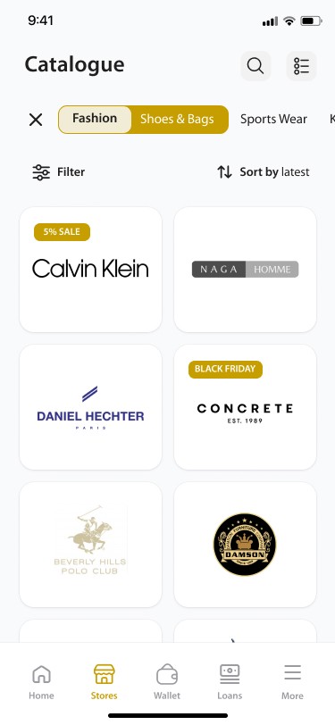 Users will be able to search, sort and filter through all merchants available and finalize all their payments.