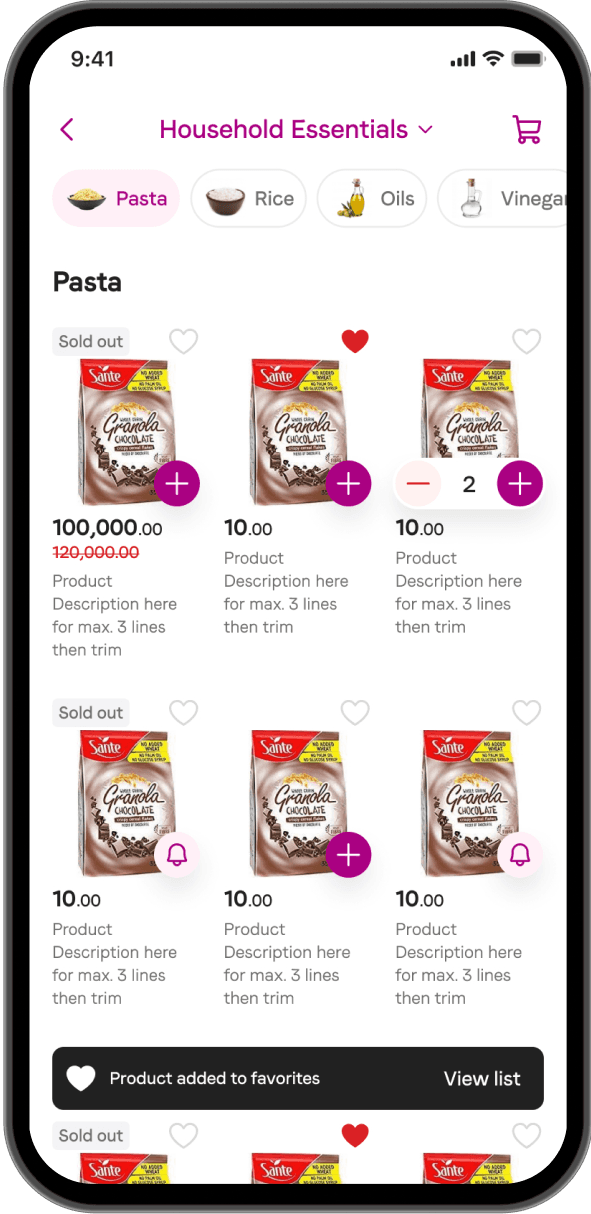 Picture this: you're easily finding all your essentials using a super-friendly search bar and clear category navigation. With detailed product pages and a quick checkout, you're making informed choices and managing your cart like a pro. The checkout process couldn't be easier with options for delivery and secure payment right at your fingertips.