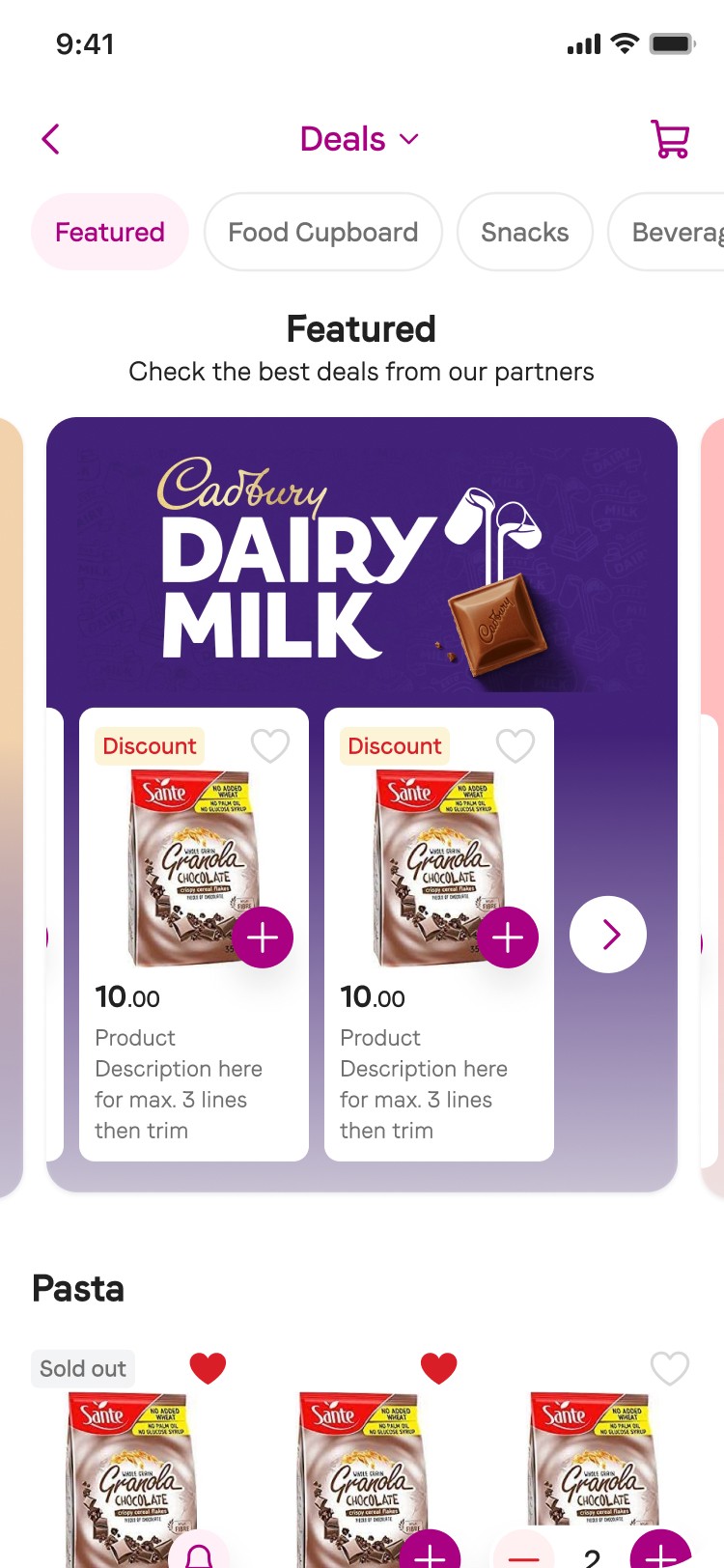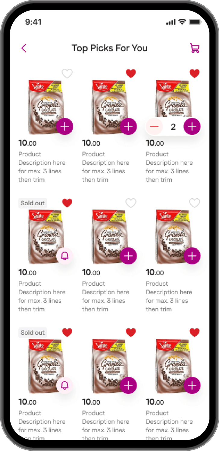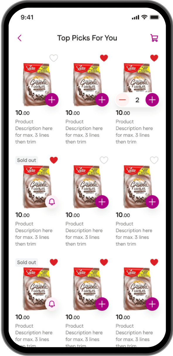 Offer users a categorized product catalog that allows for easy browsing and filtering of products through featured sections, smart lists, and deals.