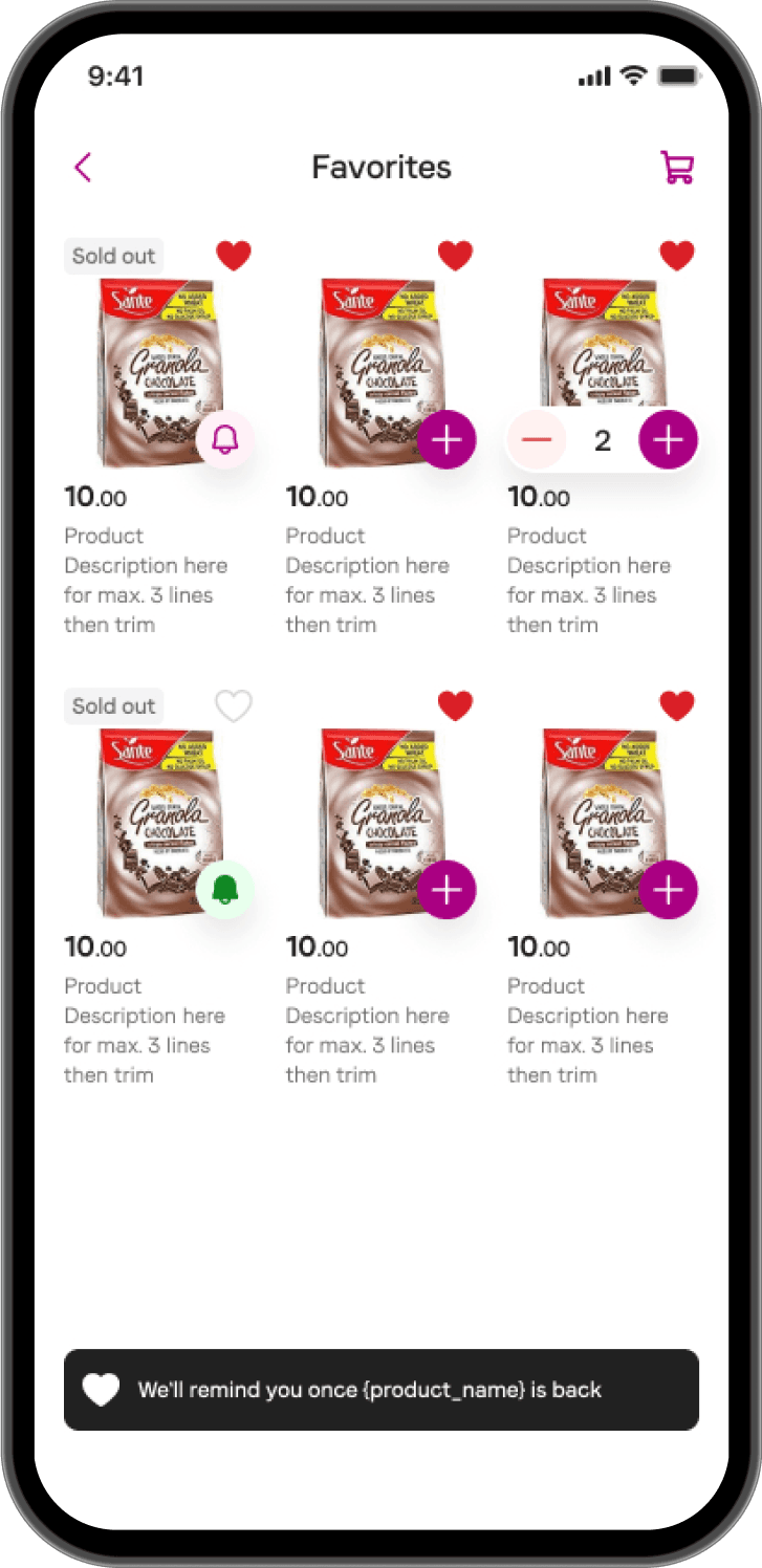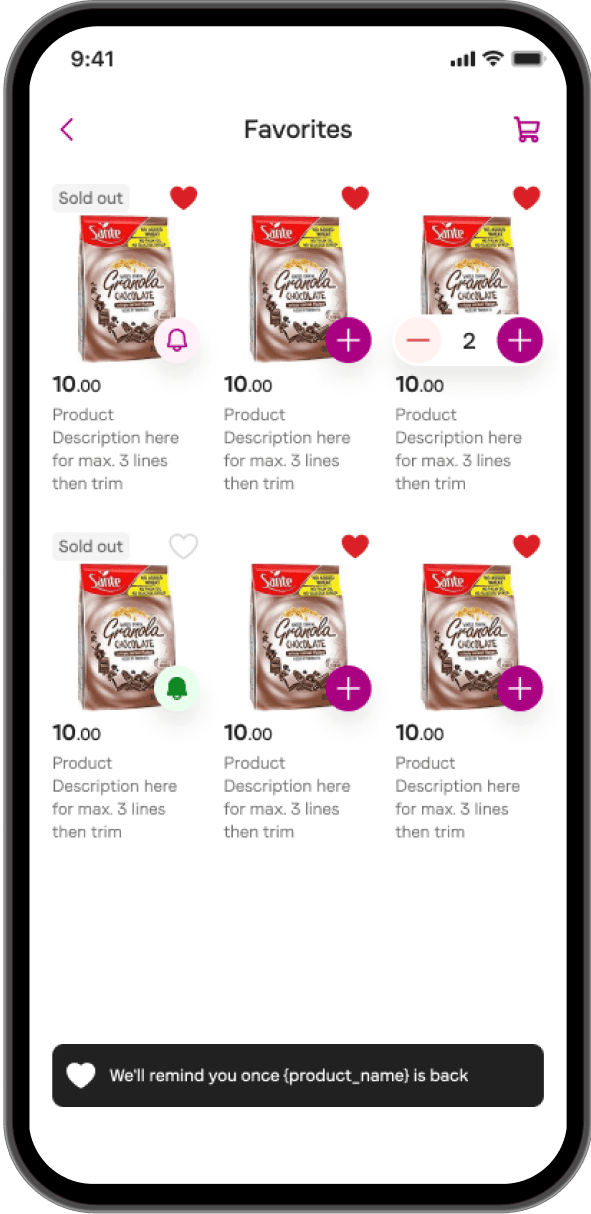 Provide users a save for later option for preferred products for quick access and future reference.
